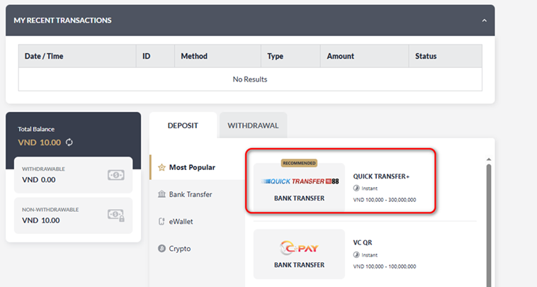 - Choose "Quick Transfer+" icon at Bank Transfer